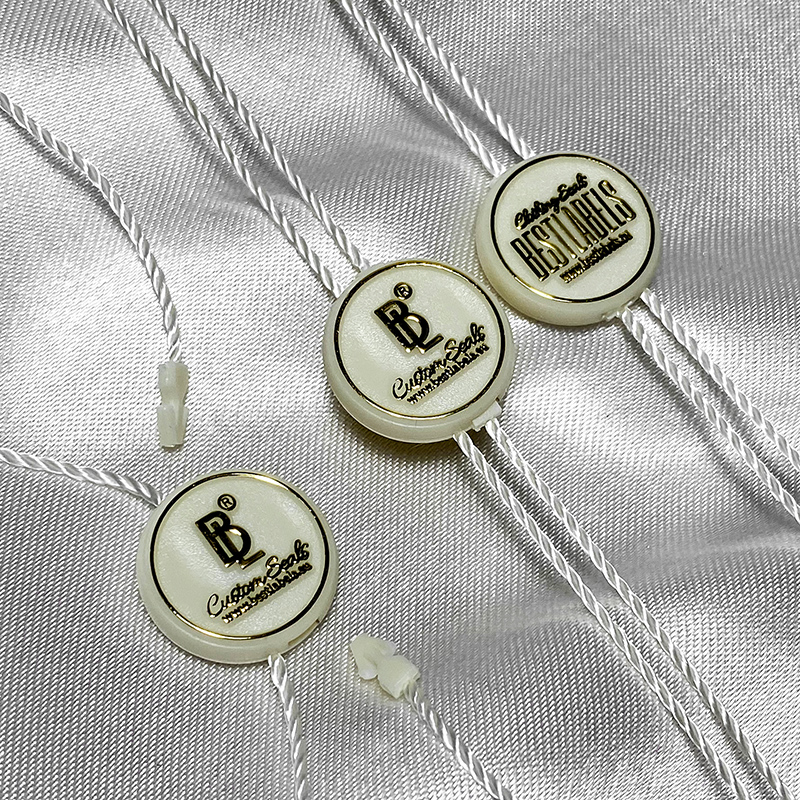 Kunststoffsiegel ST-M92 mit runder Form, sehr elegant und auf zwei Seiten wunderschön mit dem Markennamen oder Emblem versehen. Geeignet für Kleidung, Schuhe, Taschen usw. Dieses Siegelmodell wird aus hochwertigen Materialien unter Verwendung der fortgeschrittenen Technologien auf dem Gebiet hergestellt.