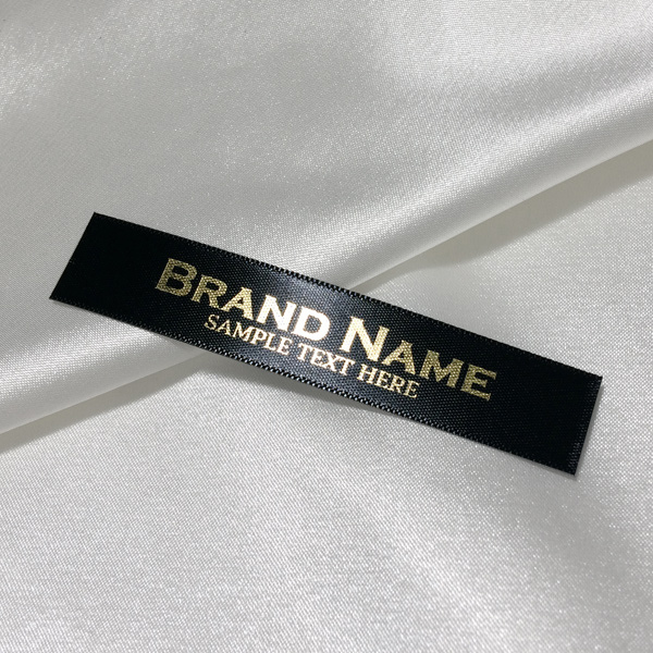 Benutzerdefiniertes Etikett TL-M129 gedruckt auf satiniertem Textil, geeignet für Kleidung und verschiedene Kleidungsstücke.