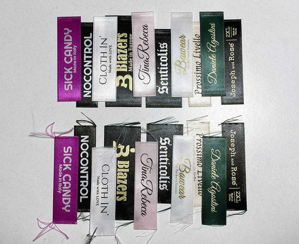 Benutzerdefiniertes Etikett TL-M3 gedruckt auf satiniertem Textil, geeignet für Kleidung und verschiedene Kleidungsstücke.