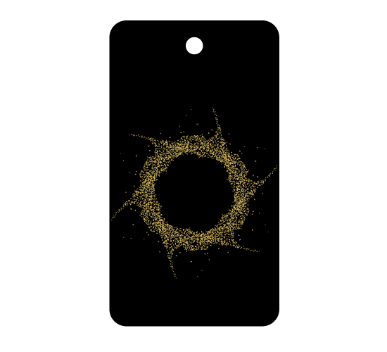 Kleidungsetikett Modell HT-M95 mit siegel und Polyester Kordel zum Aufhängen von Kleidung, personalisiert mit Goldschrift auf laminiertem Karton mit schwarzer Folie. Dieses Modelletikett besteht aus hochwertigen Materialien und wird mit den modernsten Technologien im Bereich Digitaldruck und Weiterverarbeitung hergestellt.