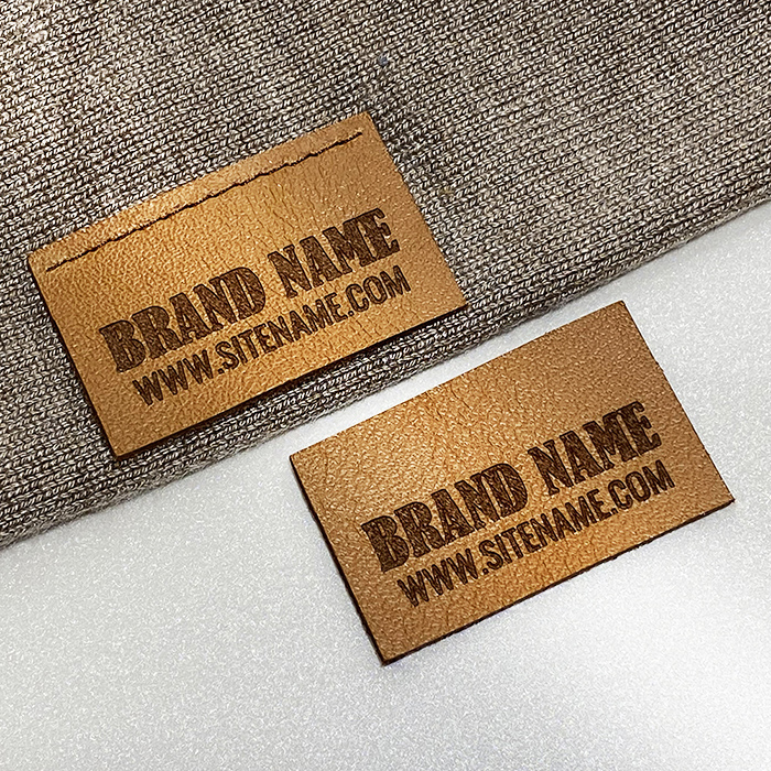 Personalisiertes Etikett EP-M33 aus Naturleder für Kleidung, Taschen, Schuhe und verschiedene Bekleidungsaccessoires.