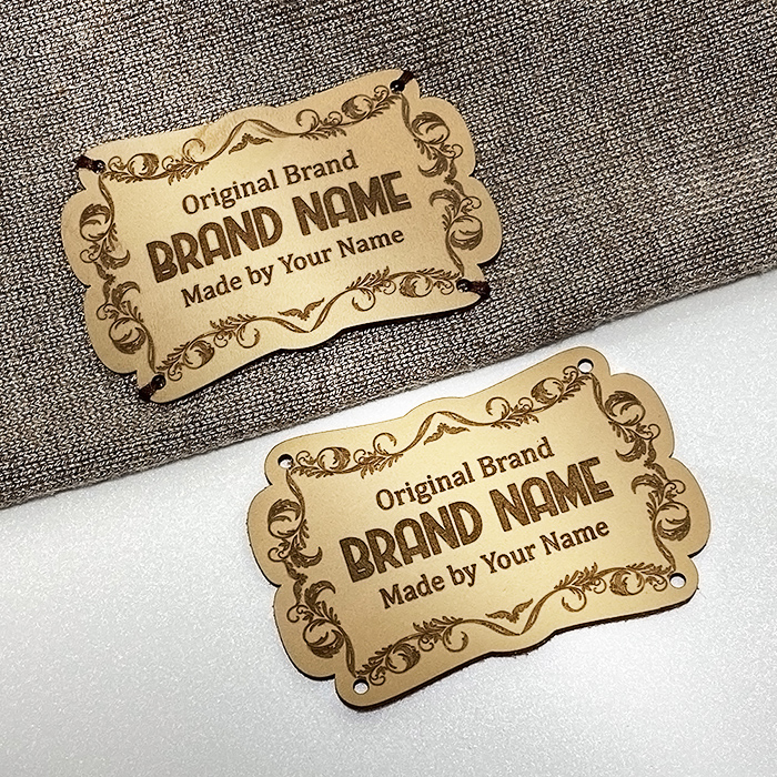 Personalisiertes Etikett EP-M42 aus Naturleder für Kleidung, Taschen, Schuhe und verschiedene Bekleidungsaccessoires.
